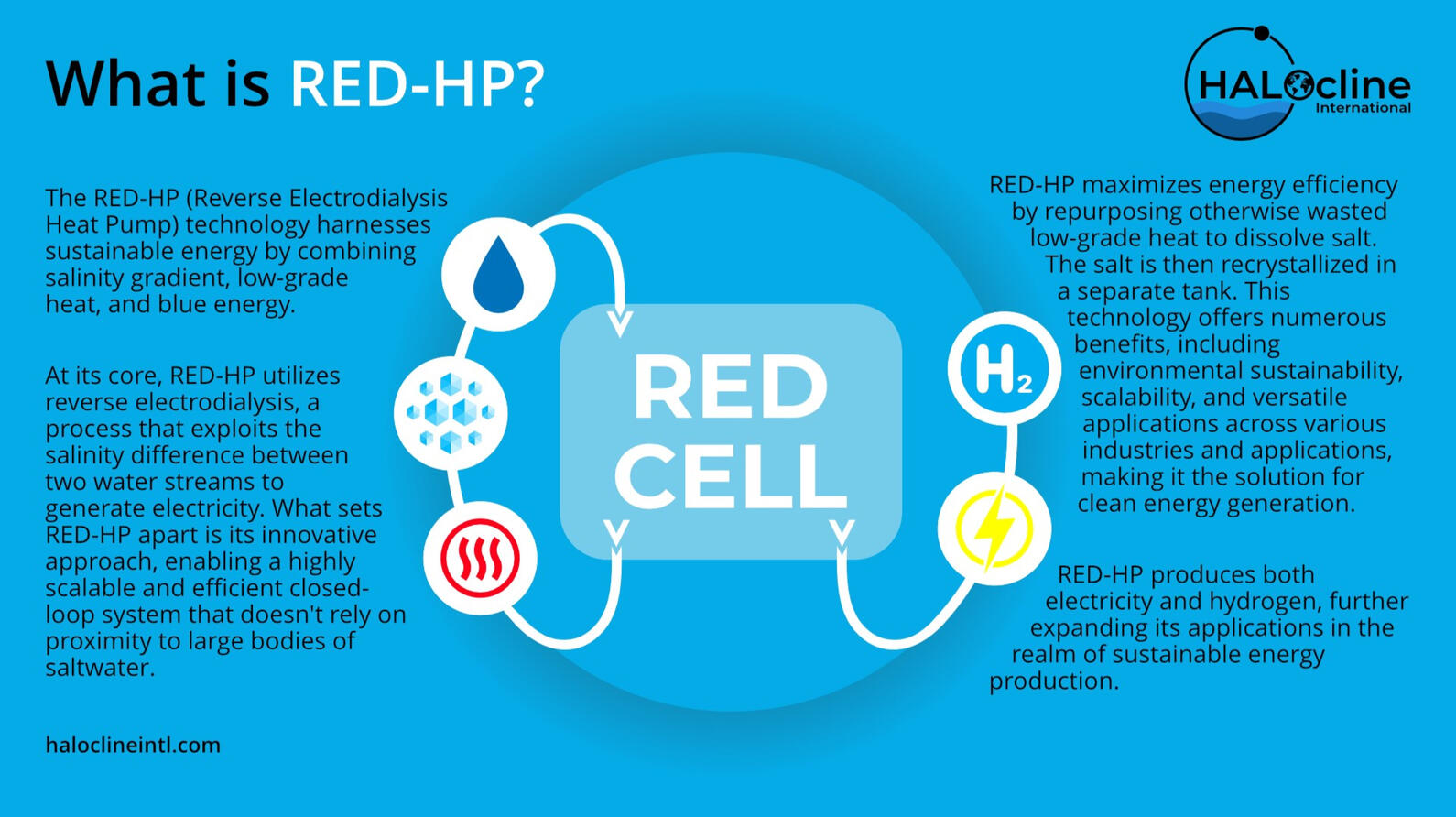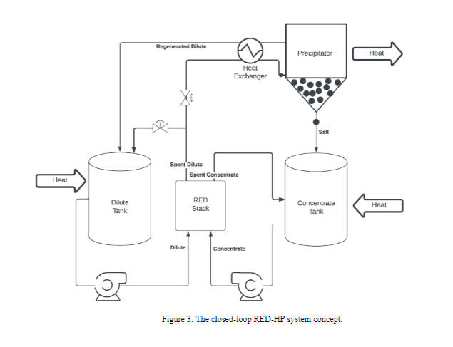 Essentially, the RED process provides supplemental on-site power generation to run the heat pump, decreasing the electricity load.